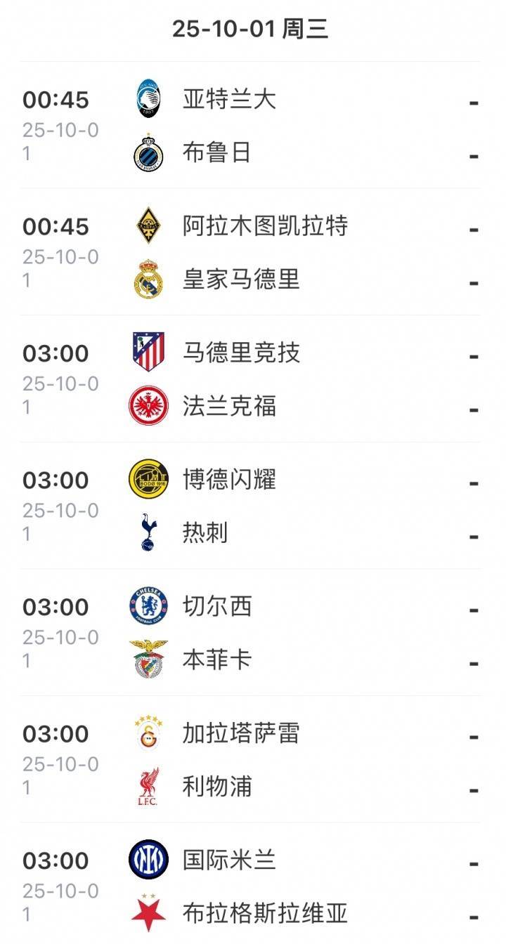 9月19日讯 欧冠第一轮比赛扫数戒指,36支球队在3天内打罢了18场比赛。第二轮比赛将在北京时刻10月1日-2日凌晨进行,将在2天内打完18场比赛。
